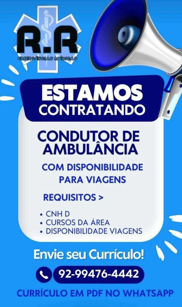 Empresa seleciona para vaga de Condutor de ambulância; Envie seu currículo!