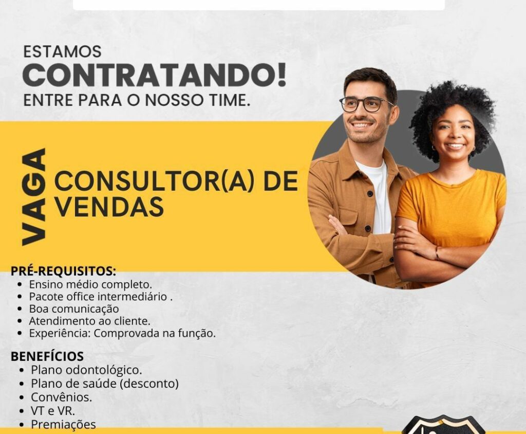 Empresa seleciona para vaga de Consultor (a) de vendas; Envie seu currículo!