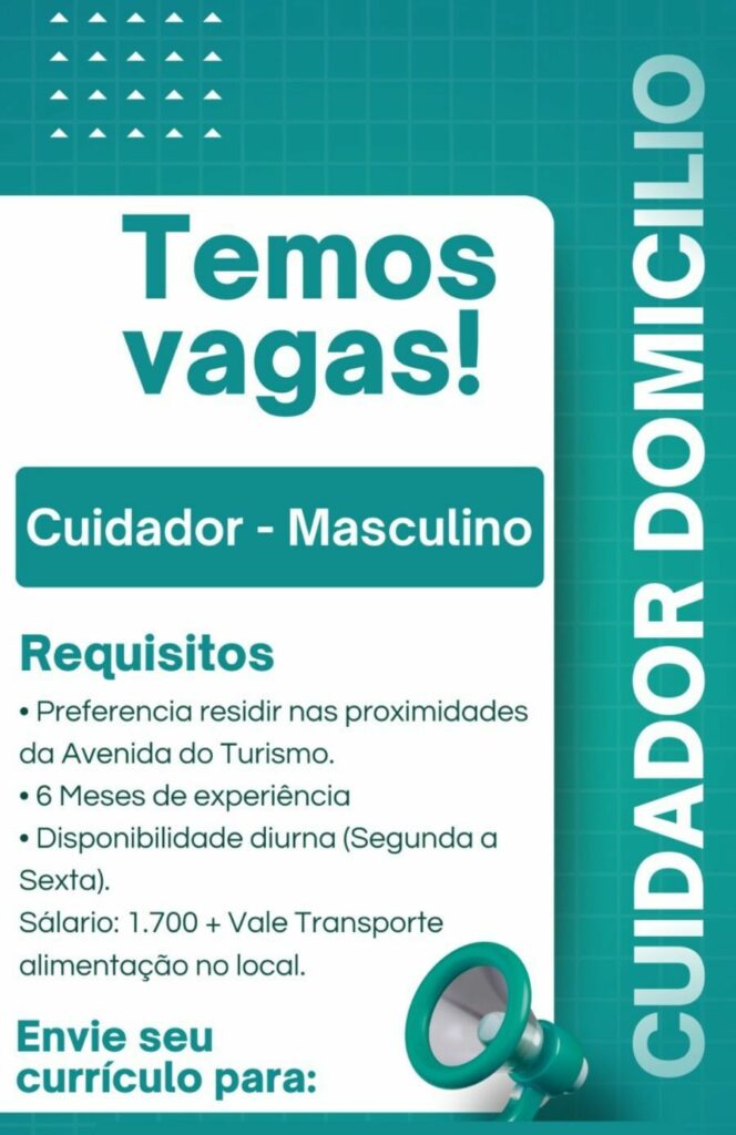 Empresa seleciona para vaga de Cuidador; Envie seu currículo!