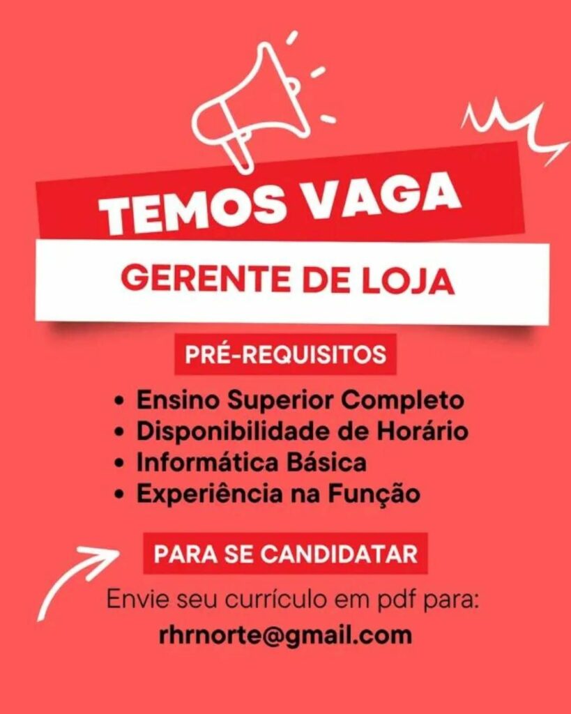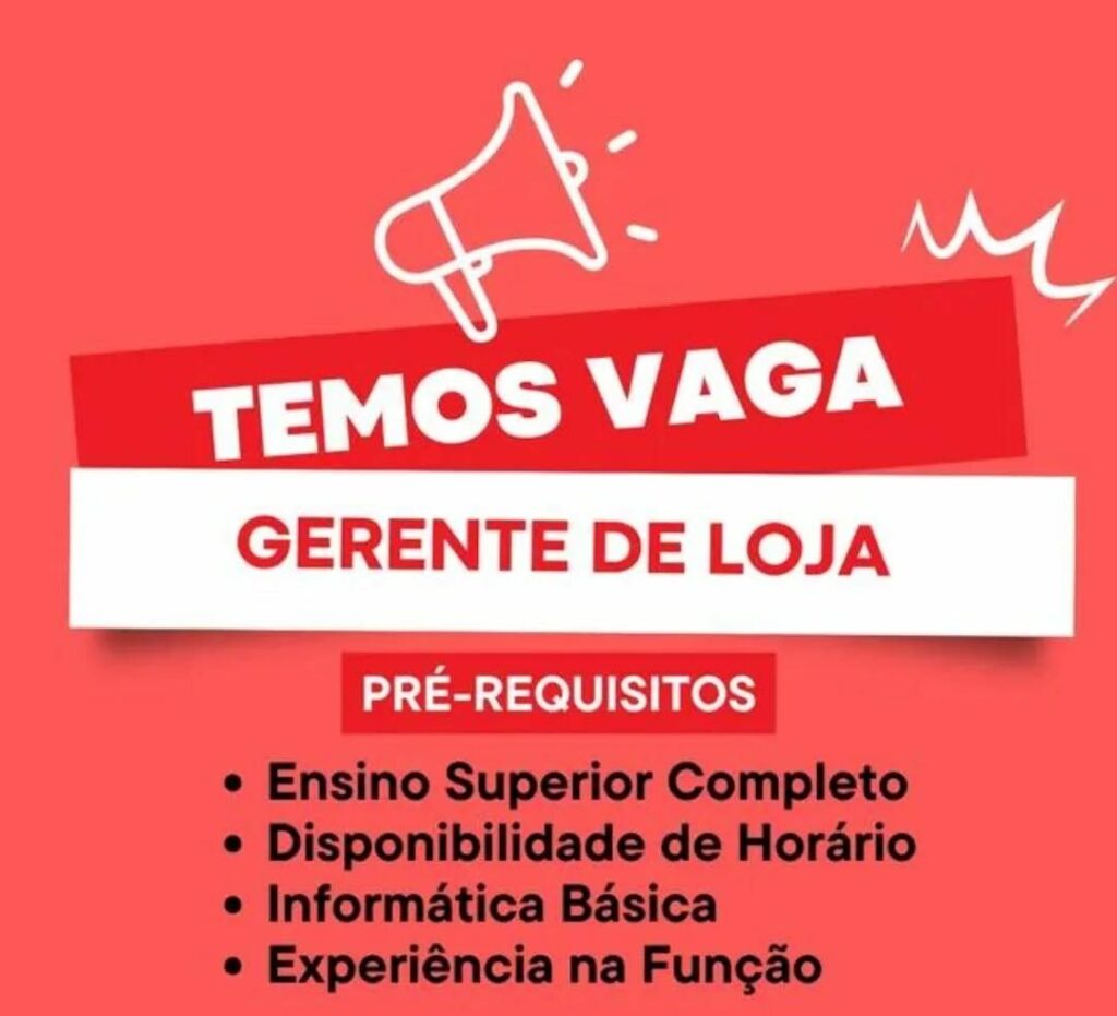 Empresa seleciona para vaga de Gerente de loja; Envie seu currículo!