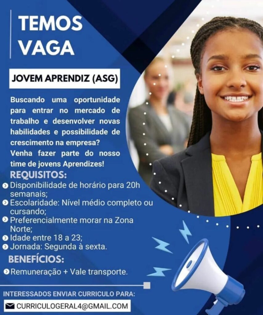 Empresa seleciona para vaga de Jovem Aprendiz ASG; Envie seu currículo!