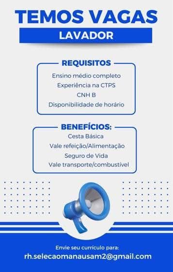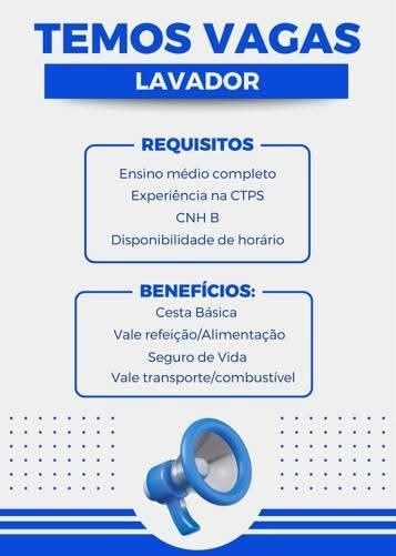 Empresa seleciona para vaga de Lavador; Envie seu currículo!