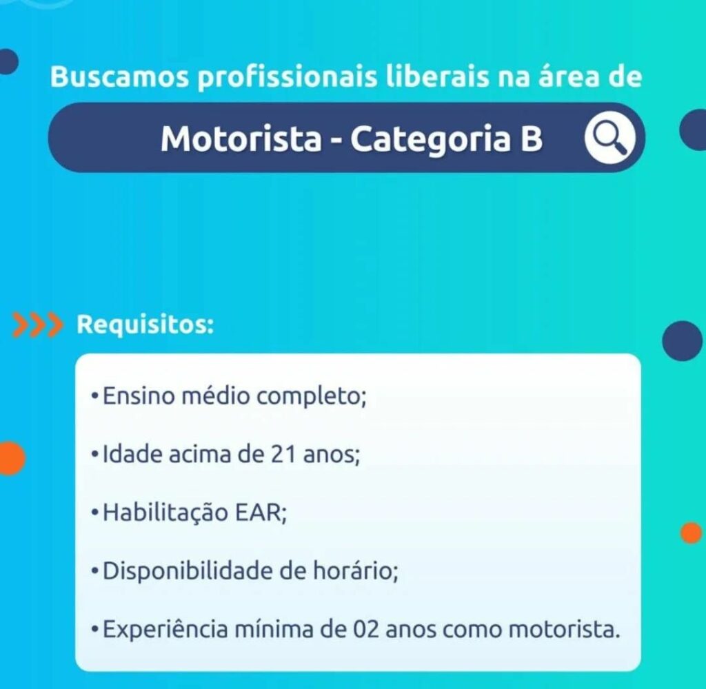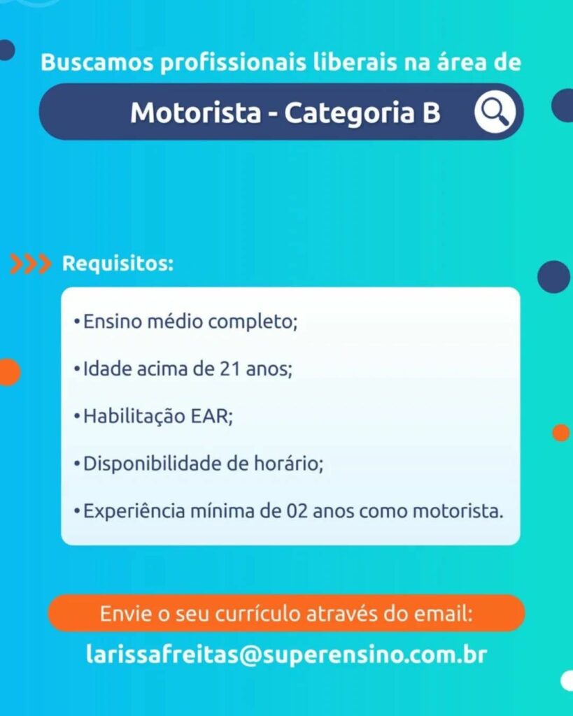 Empresa seleciona para vaga de Motorista Categoria B; Envie seu currículo!