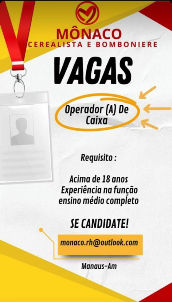 Empresa seleciona para vaga de Operador (a) de caixa, Gerente de loja; Envie seu currículo!