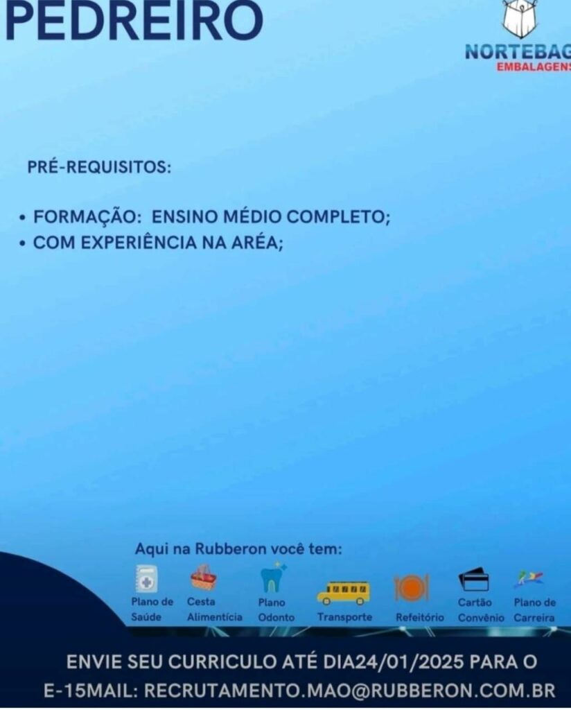 Empresa seleciona para vaga de Pedreiro; Envie seu currículo!