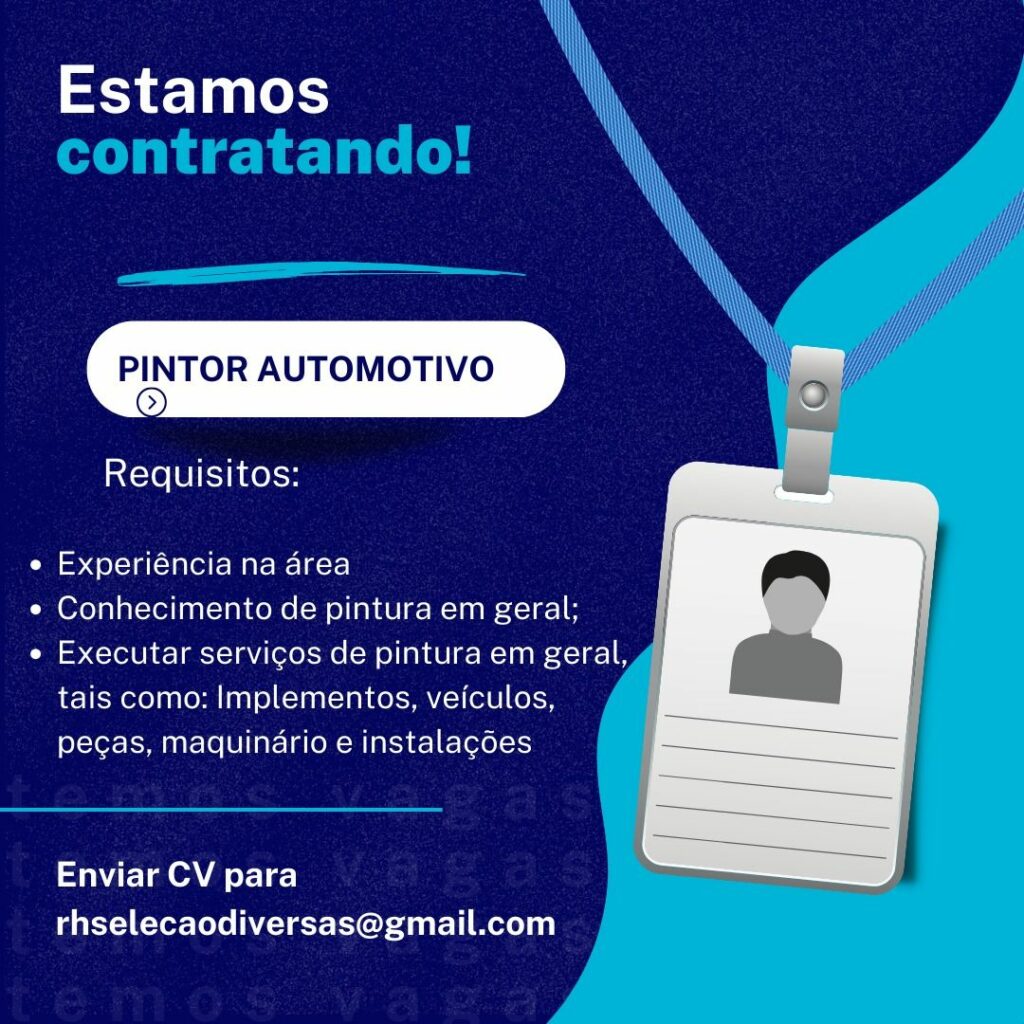Empresa seleciona para vaga de Pintor automotivo; Envie seu currículo!