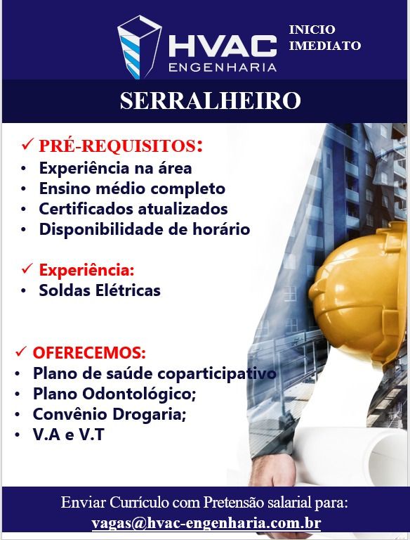 Empresa deseja contratar Montador de estrutura metálica, Soldador; Envie seu currículo!