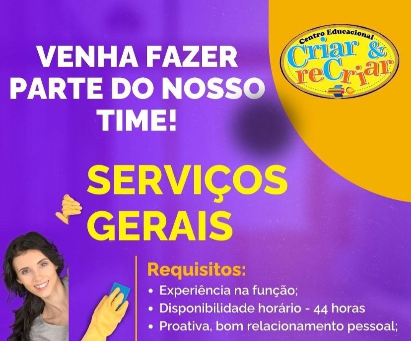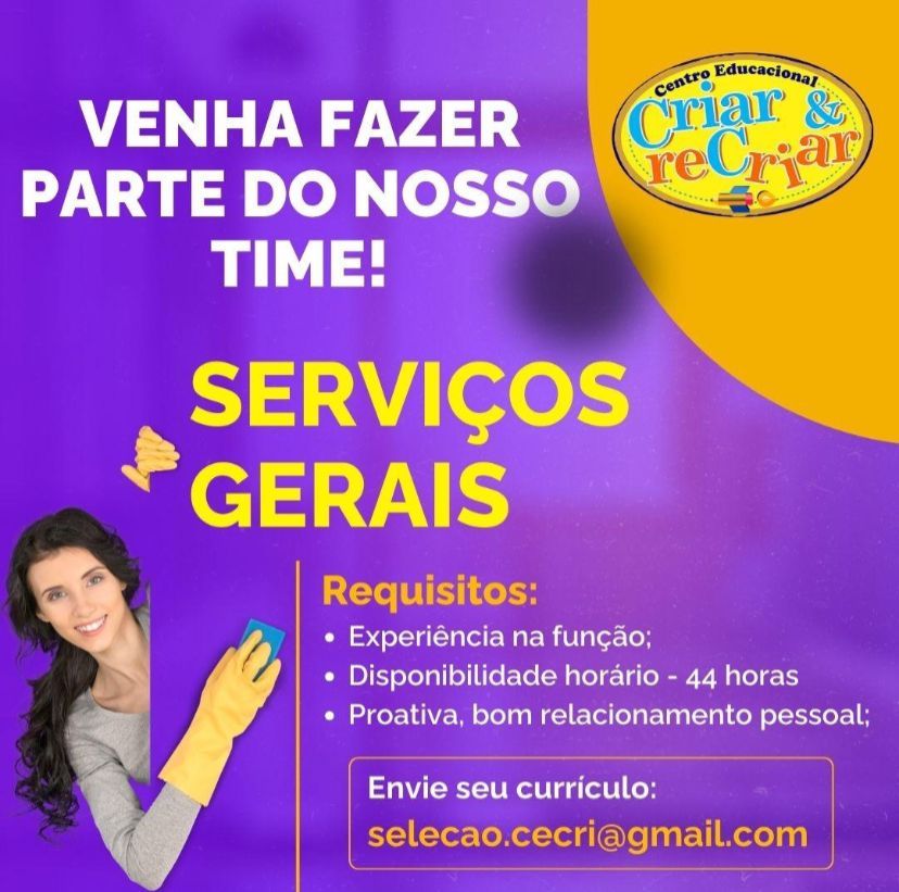 Empresa seleciona para vaga de Serviços Gerais; Envie seu currículo!
