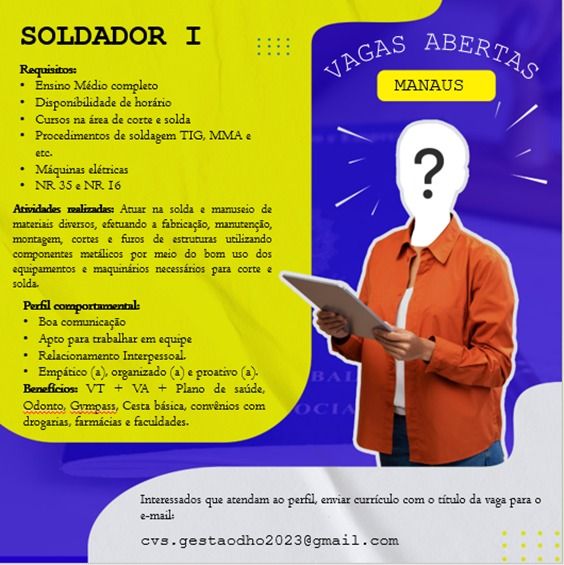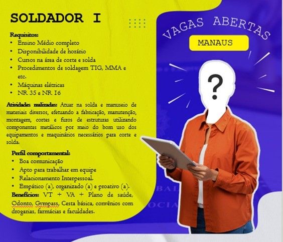 Empresa seleciona para vaga de Soldador l; Envie seu currículo!