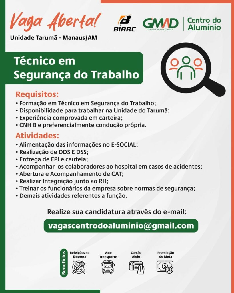 Empresa seleciona para vaga de Técnico de segurança do trabalho; Envie seu currículo!