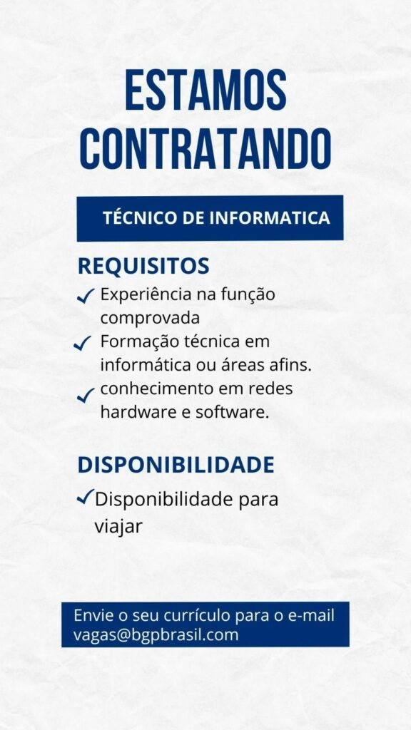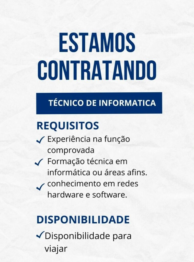 Empresa seleciona para vaga de Técnico informática; Envie seu currículo!