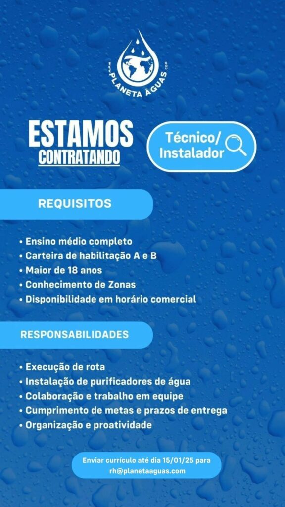 Empresa seleciona para vaga de Técnico Instalador; Envie seu currículo!