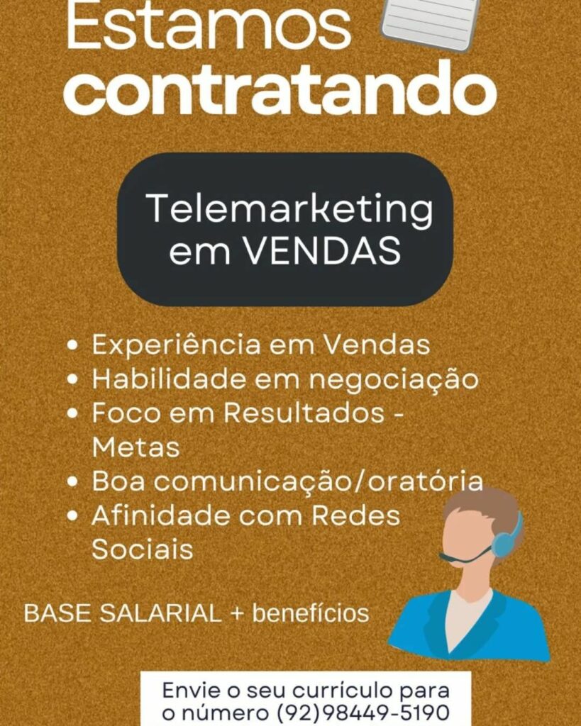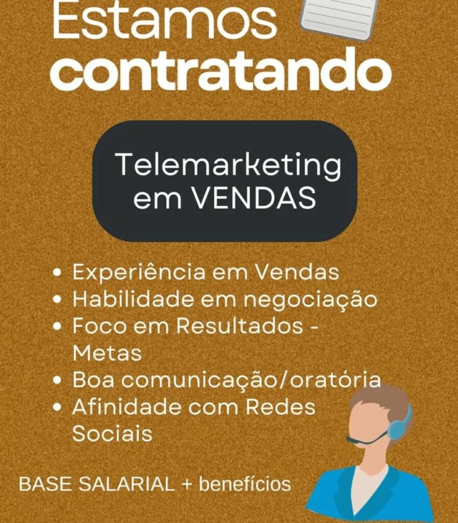 Empresa seleciona para vaga de Telemarketing em vendas; Envie seu currículo!