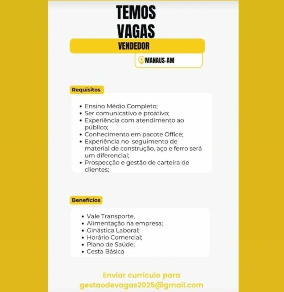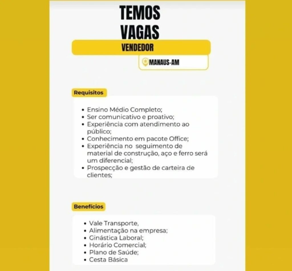 Amazon Aço recrutando para três vagas de emprego em Manaus