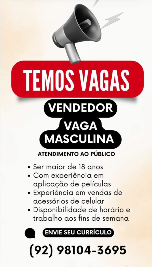Empresa seleciona para vaga de Vendedor; Envie seu currículo!