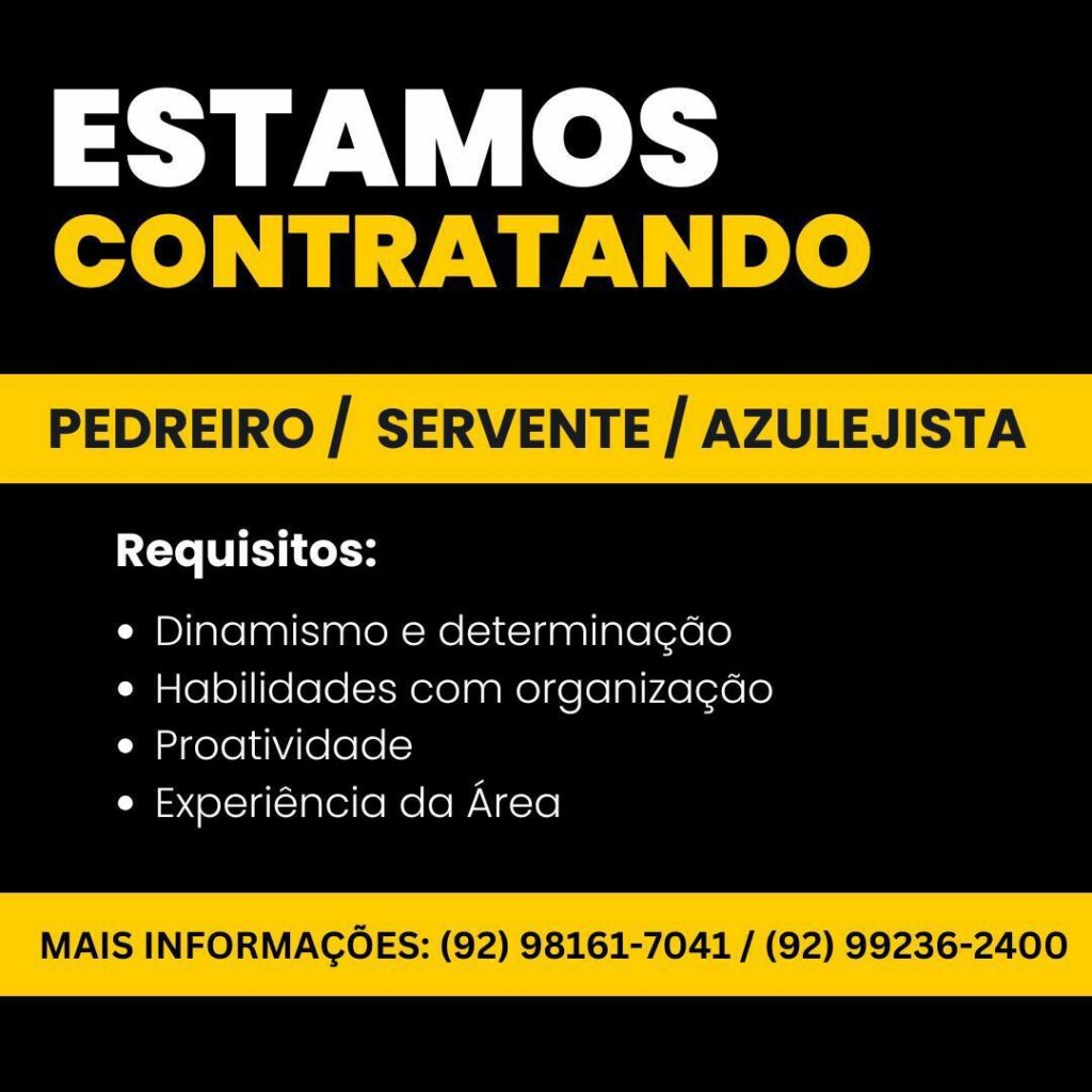 Empresa seleciona Pedreiro, Servente, Azulejista; Envie seu currículo!