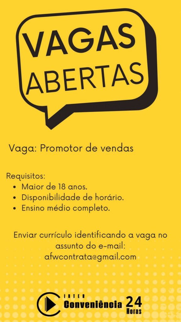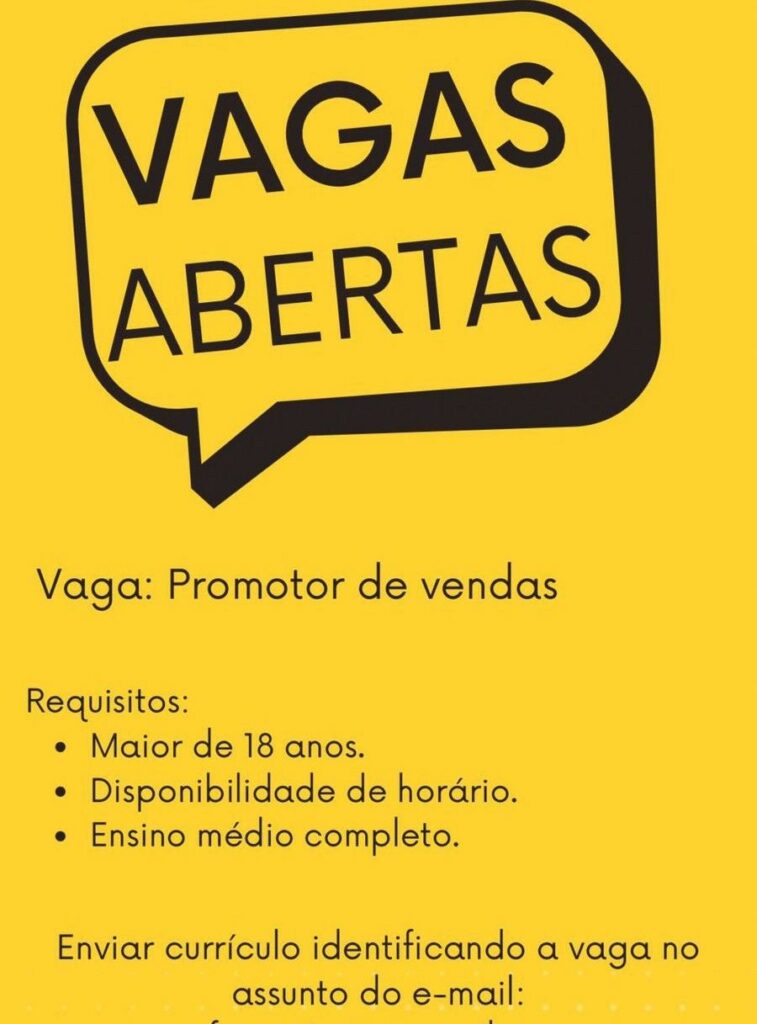 Empresa seleciona Promotor de vendas; Envie seu currículo!