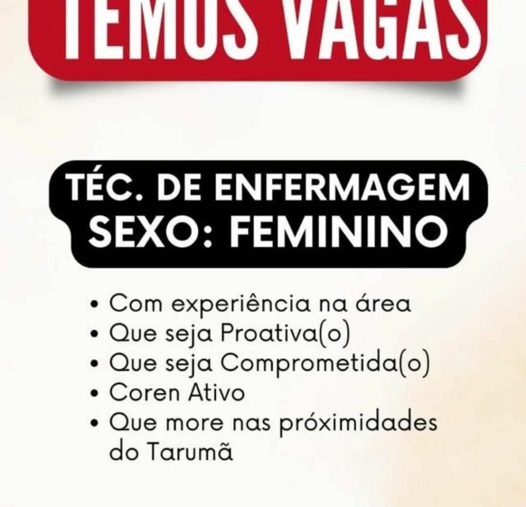 • Hospital Santa Júlia abre vaga para maqueiro em Manaus