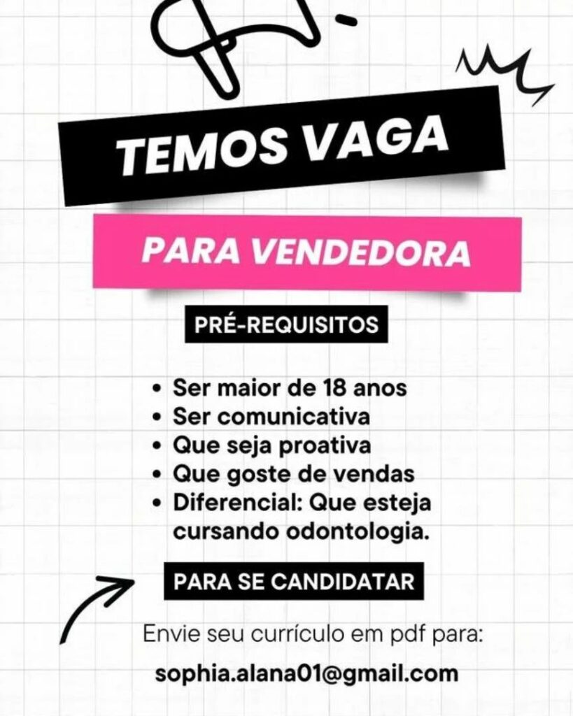 Empresa contrata para compor seu quadro de colaboradores Promotora de vendas; Envie seu currículo!