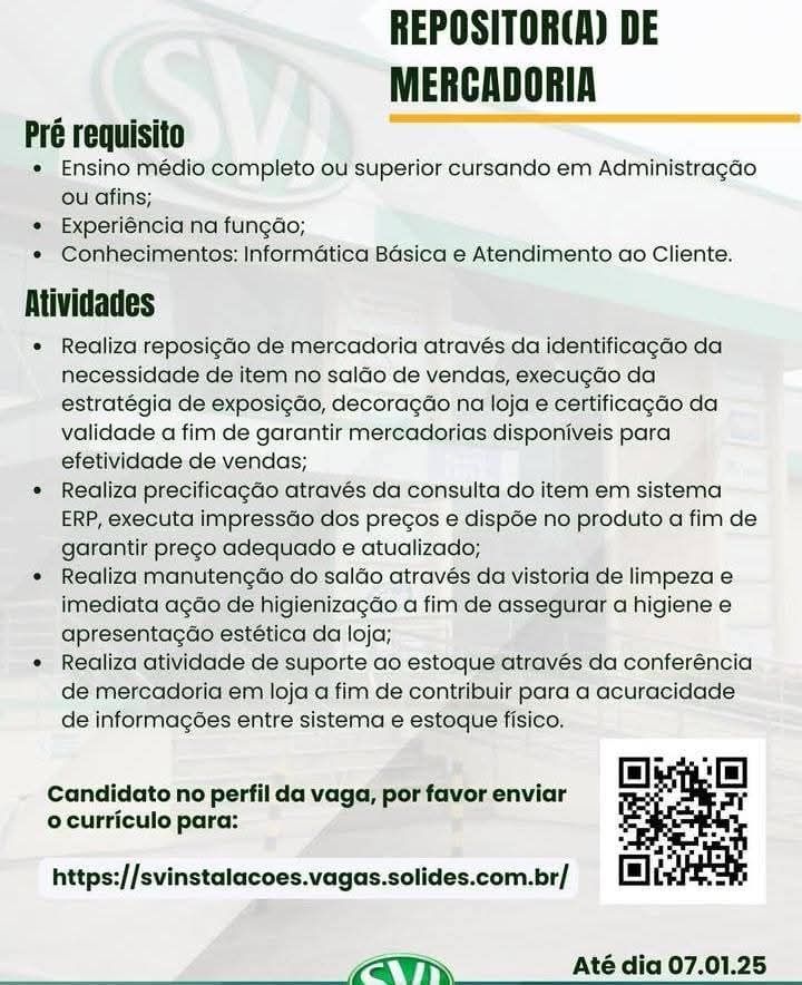 Empresa SVI seleciona Repositor (a) de mercadoria; Envie seu currículo!
