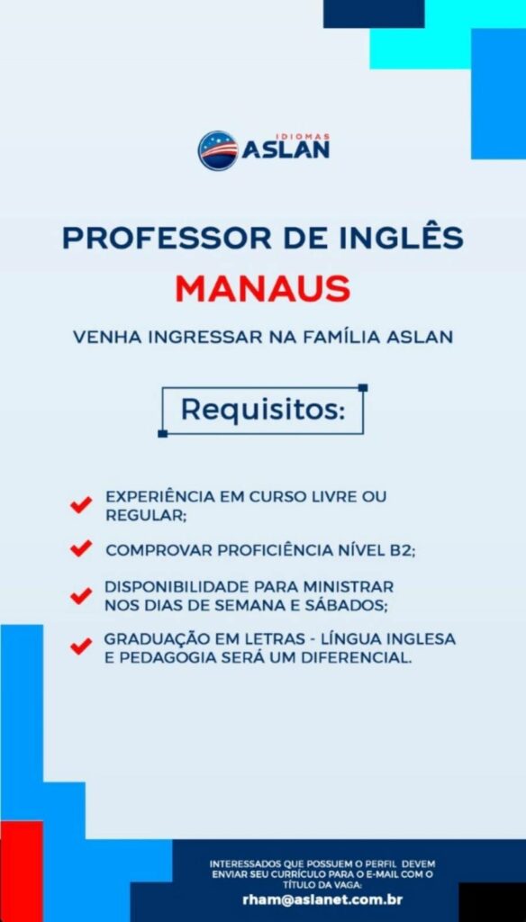 Escola de idiomas seleciona Professor de inglês; Envie seu currículo!