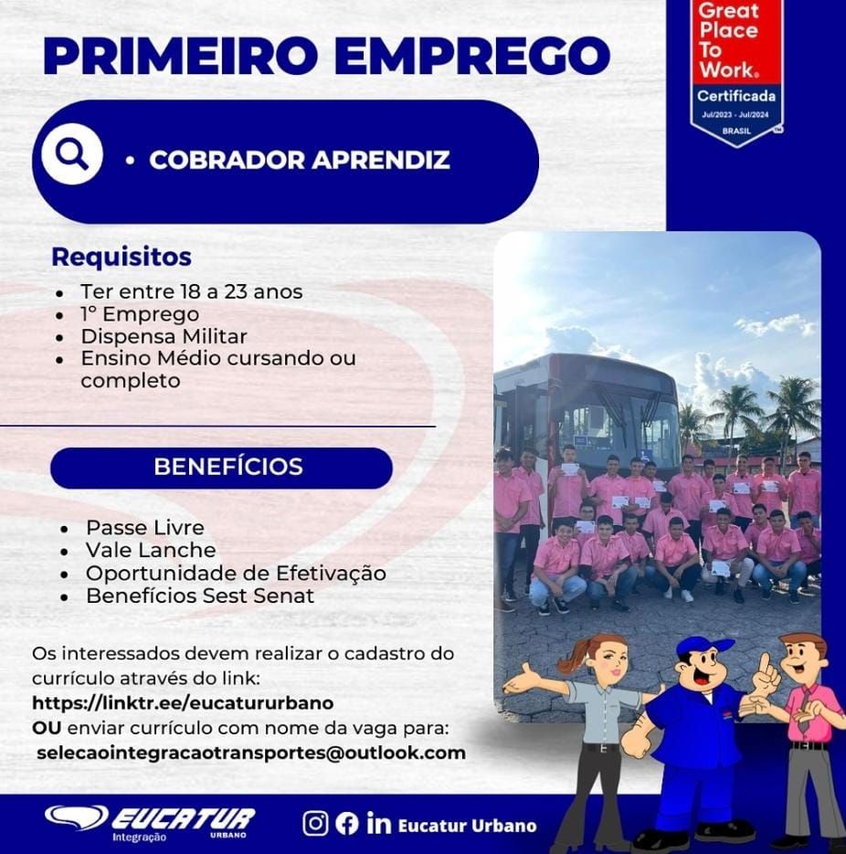 Eucatur está selecionando Cobrador Aprendiz primeiro emprego; Saiba como se candidatar!