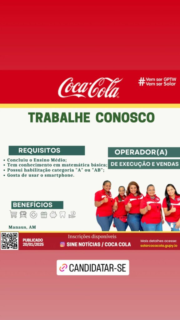 Fábrica da Coca-cola seleciona Operador (a); Envie seu currículo!