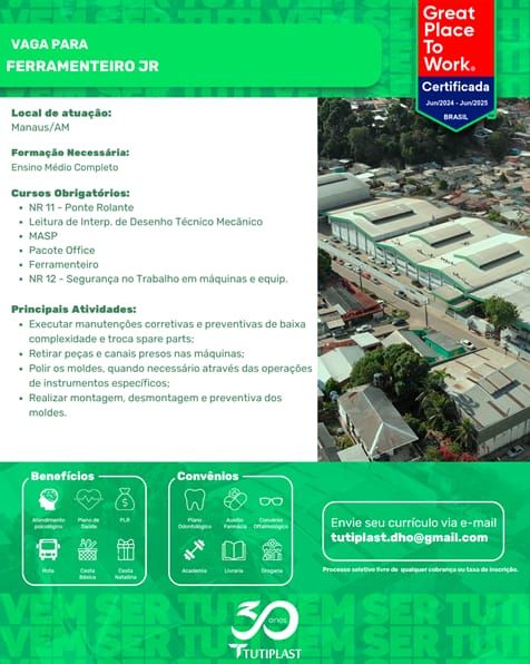 Fábrica da Tutiplast abre seleção para vagas de emprego; Saiba como se candidatar!