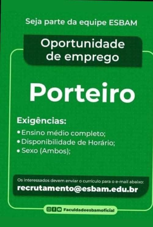 Faculdade seleciona para vaga de Porteiro; Envie seu currículo!