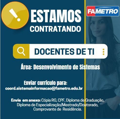 Fametro seleciona para vaga de Docentes de TI; Envie seu currículo!
