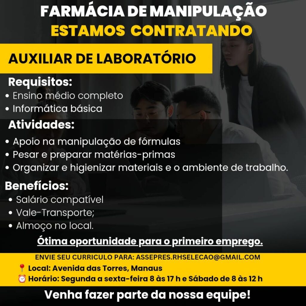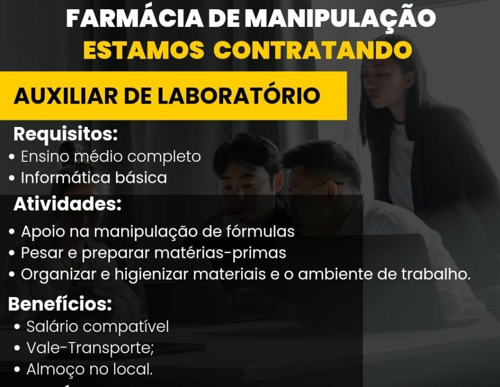 Farmácia de manipulação contrata Auxiliar de laboratório; Envie seu currículo!