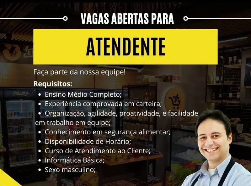 Coema Supermercado deseja contratar Atendente de padaria, Ajudante de depósito; Envie seu endereço!