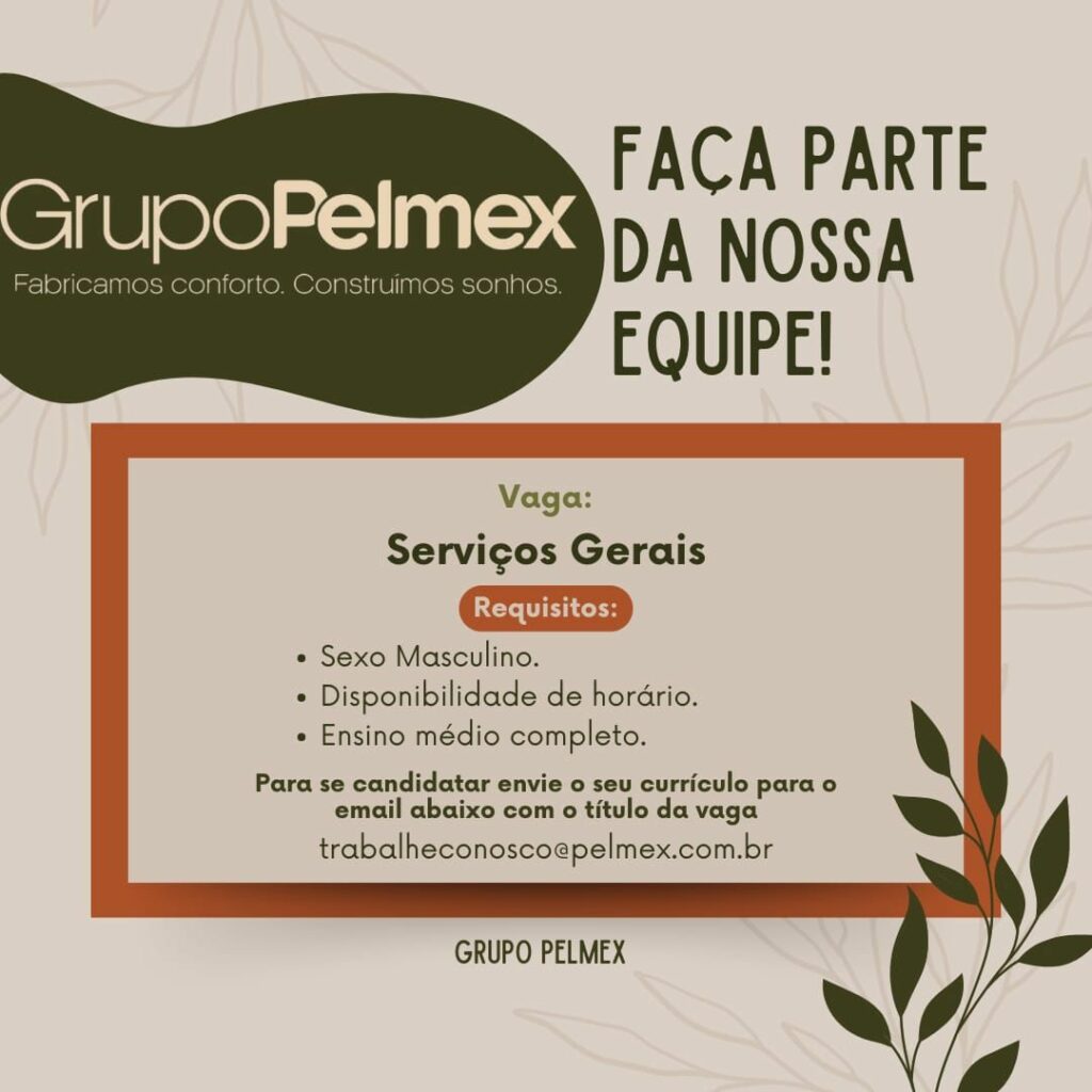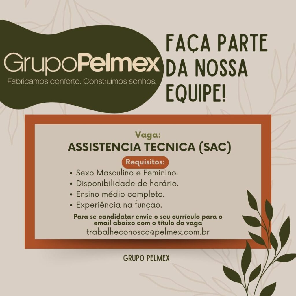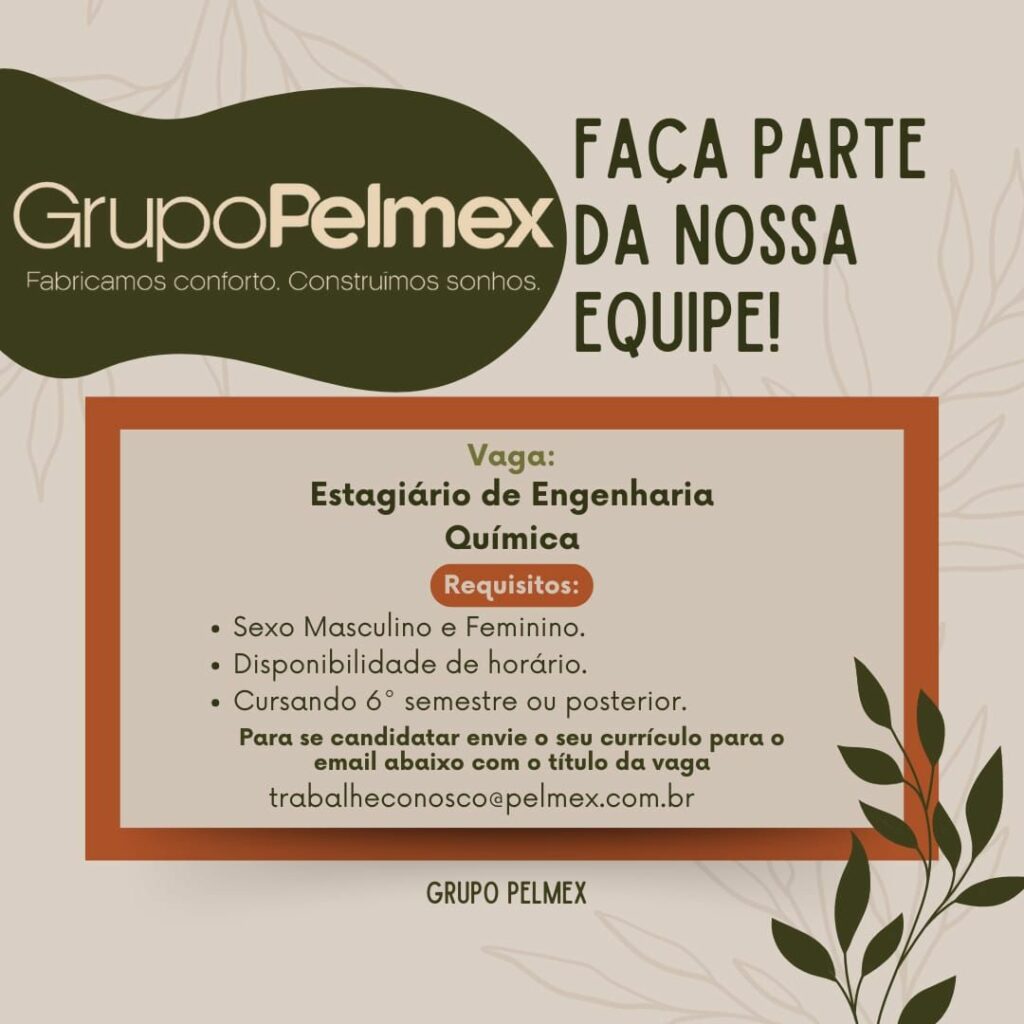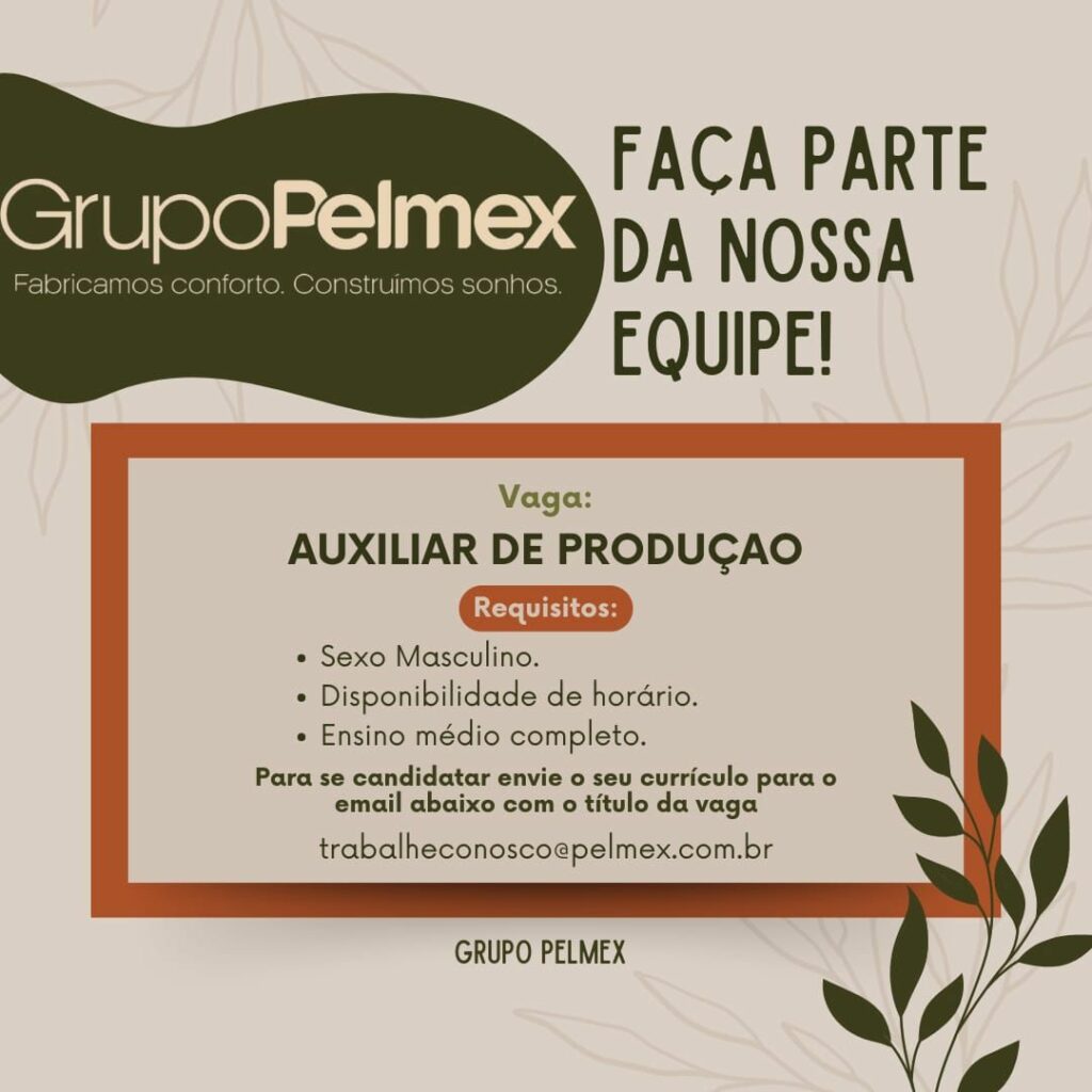 Grupo Pelmex está selecionando Auxiliar de produção, Auxiliar de marcenaria, auxiliar de expedição, Assistência técnica (sac), Serviços Gerais,Estagiária de engenharia química; Envie seu currículo!