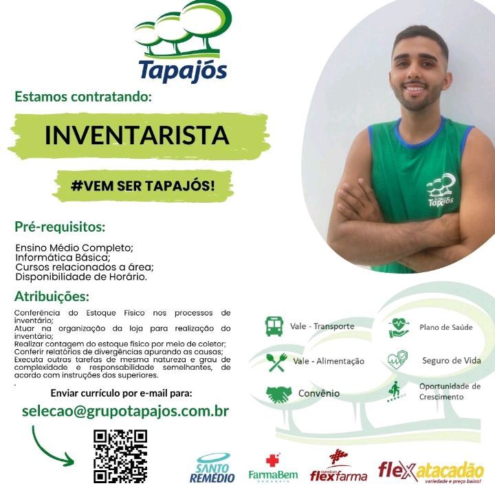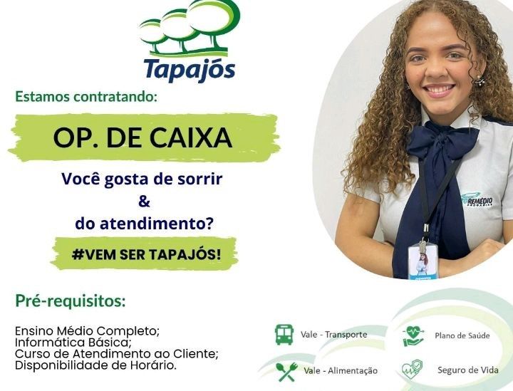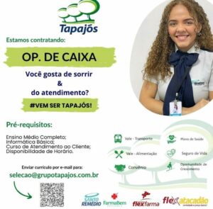 Grupo Tapajós seleciona Op. de caixa, Inventarista; Envie seu currículo!