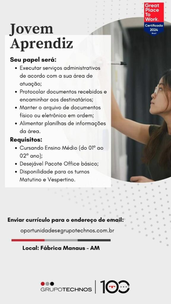 Grupo Technos está selecionando Jovem Aprendiz; Envie seu currículo!