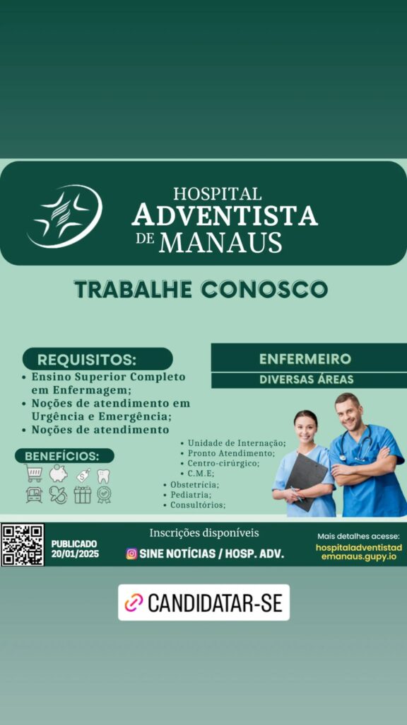 • Hospital Santa Júlia abre vaga para maqueiro em Manaus