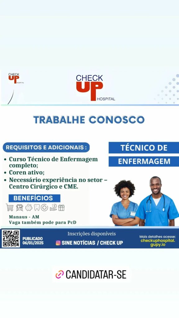 Hospital Check up seleciona Técnico de enfermagem; Envie seu currículo!