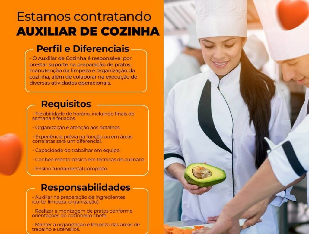 Empresa seleciona Cozinheiro (a), Auxiliar de cozinha, Motorista B; Envie seu currículo!