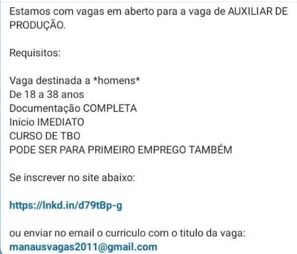Empresa está selecionando Auxiliar de produção; Envie seu currículo!