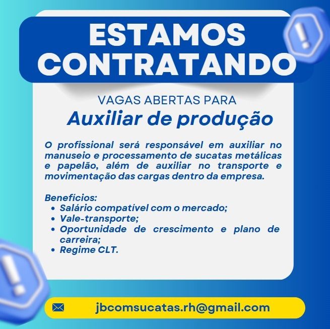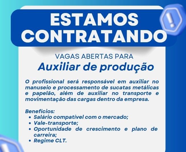 Indústria de grande porte contrata Auxiliar de produção; Envie seu currículo!