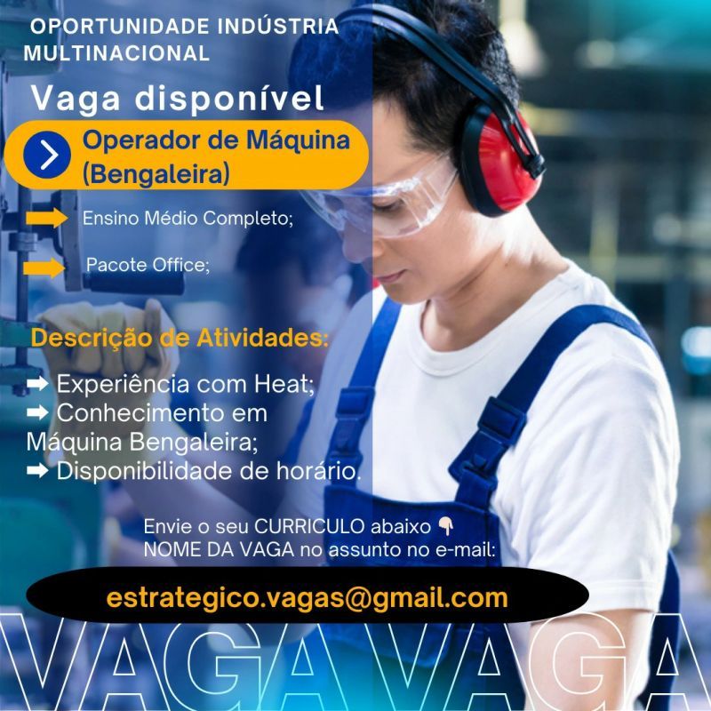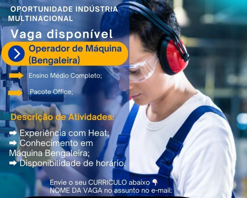 Indústria multinacional seleciona Operador de máquina Bengaleira; Envie seu currículo!