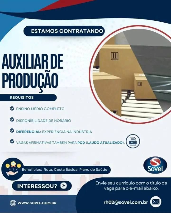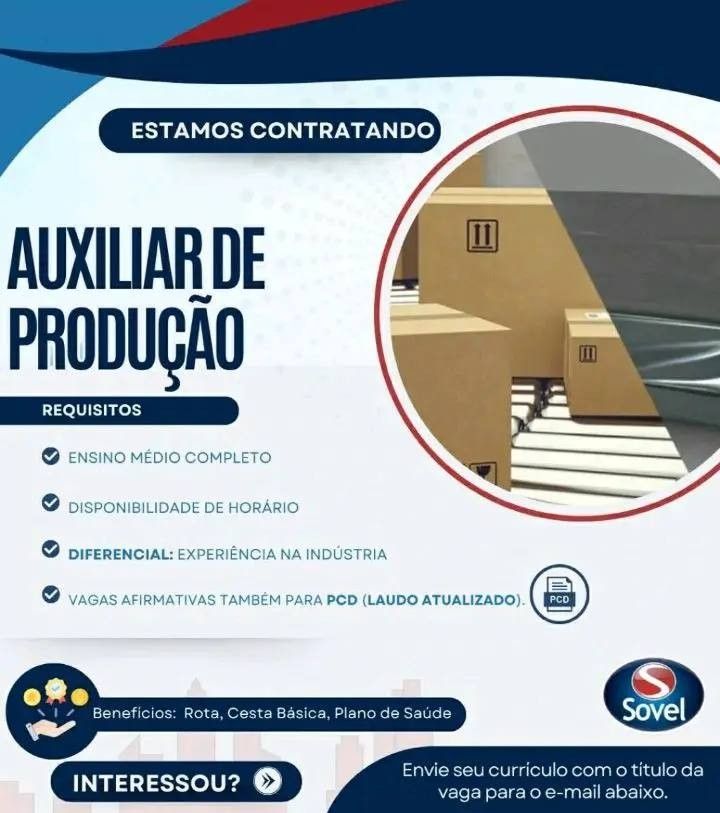 Indústria seleciona para vaga de Auxiliar de produção; Envie seu currículo!