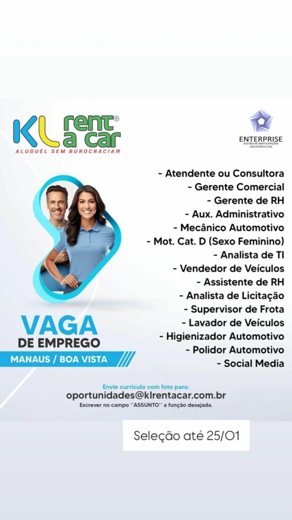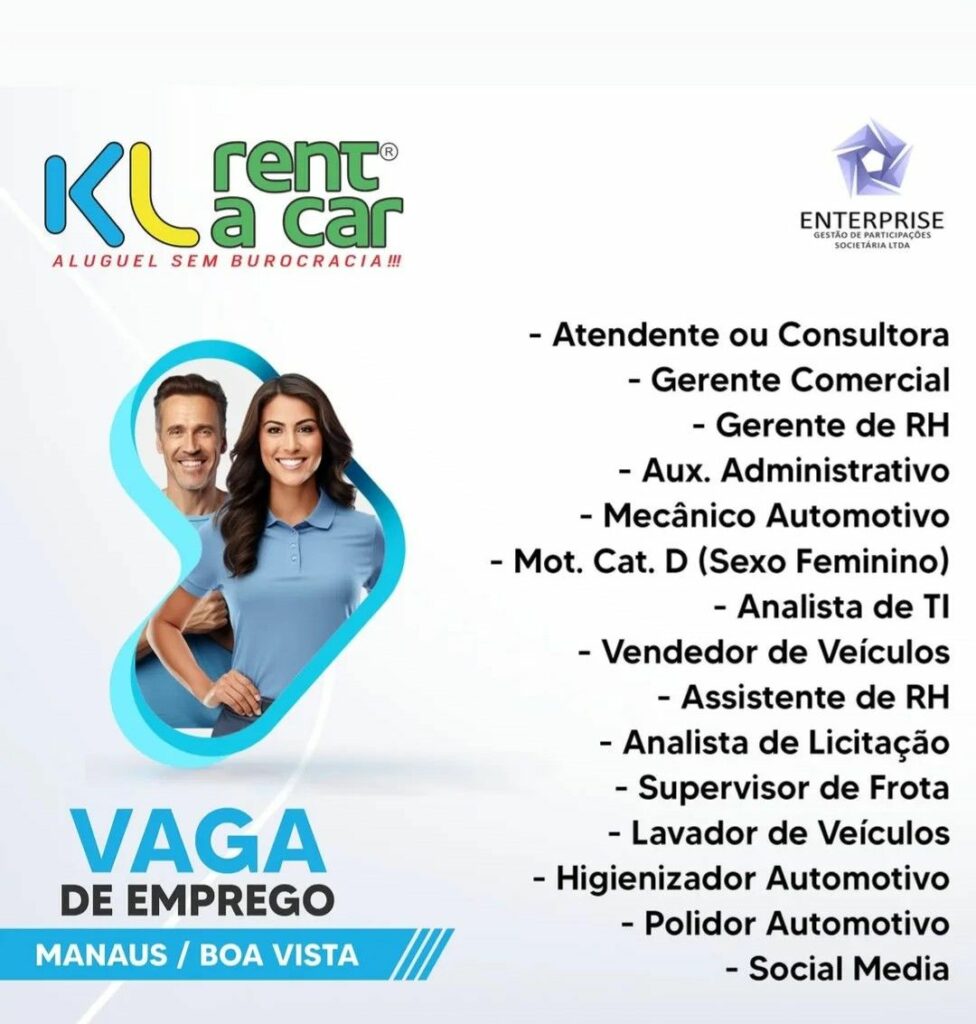 Kl rent a car abre seleção para vagas de emprego em Manaus
