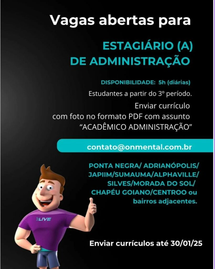Live academia seleciona Estagiário (a) de administração; Envie seu currículo!