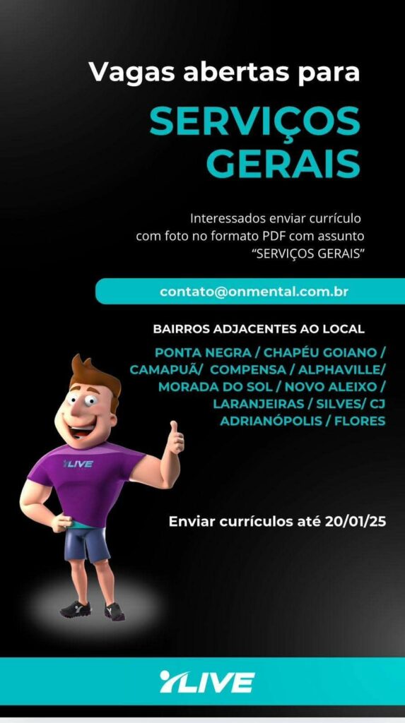 Live academia seleciona Serviços Gerais; Envie seu currículo!