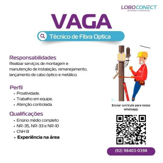 Lobo conect está selecionando Técnico de fibra óptica; Envie seu currículo!