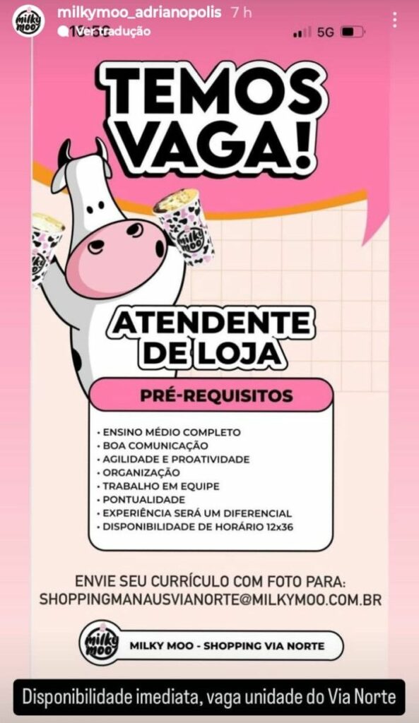 Loja do shopping Via norte seleciona Atendente de loja; Envie seu currículo!