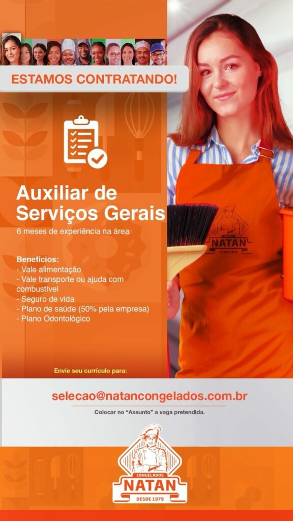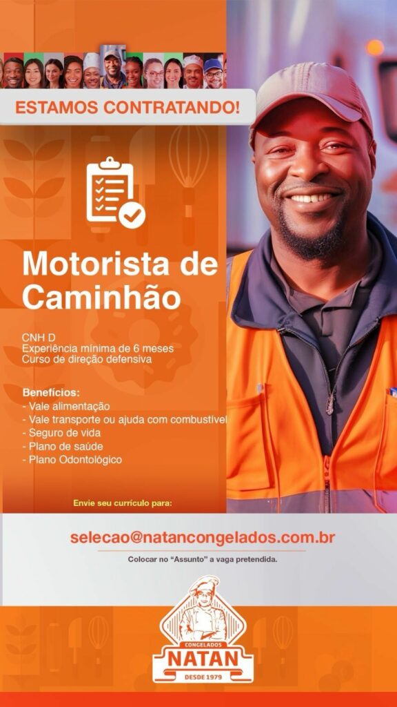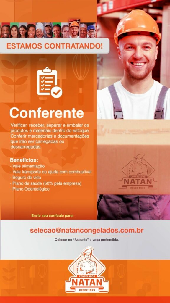 Natan congelados seleciona, Auxiliar de Produção, Auxiliar de serviços gerais, Conferente, Motorista de caminhão; Envie seu currículo!