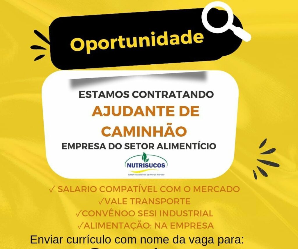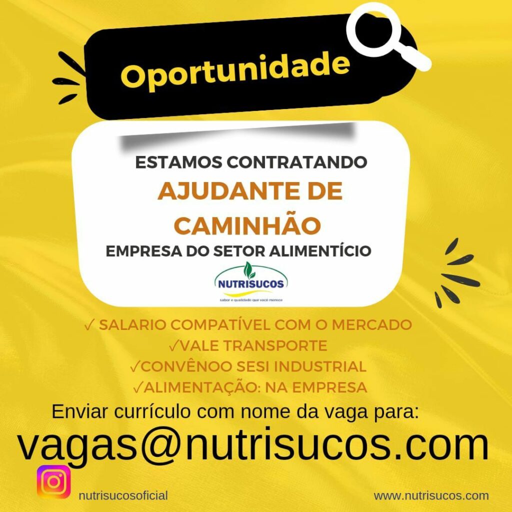 Nutrisucos seleciona para vaga de Ajudante de caminhão; Envie seu currículo!