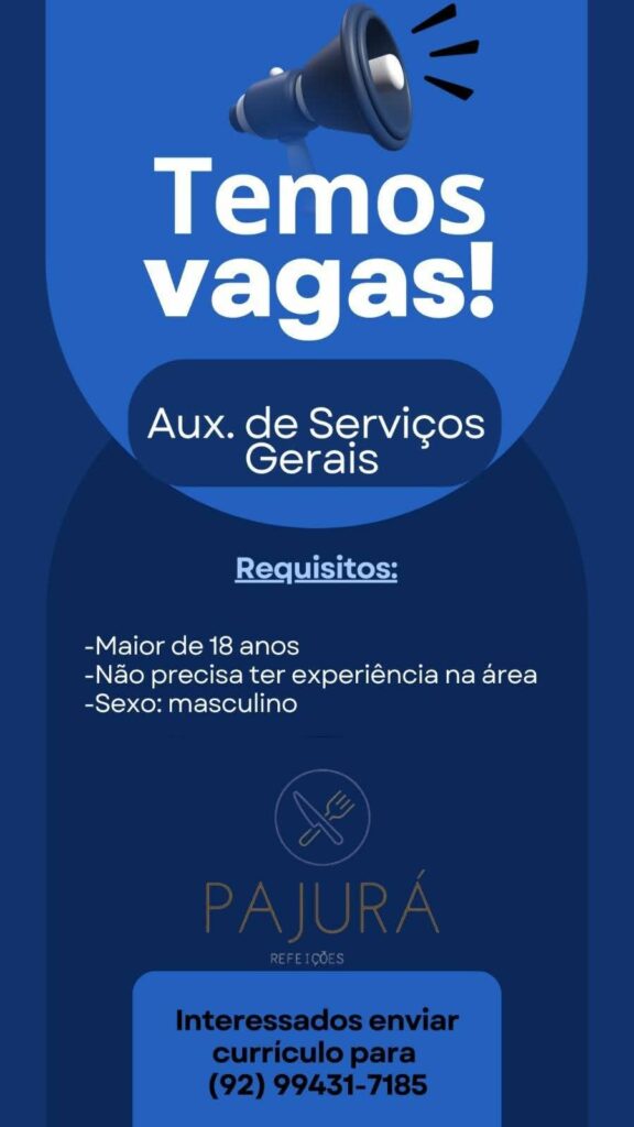 Pajurá refeições seleciona Auxiliar de serviços gerais; Envie seu currículo!